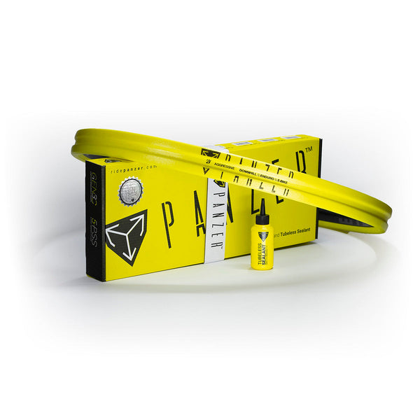PANZER Anti-puncture Mousse for Enduro, E-bike and Downhill from 29” for rims from 25mm to 30mm wide. Includes 125ml bottle. of PANZER Tubeless Fluid.